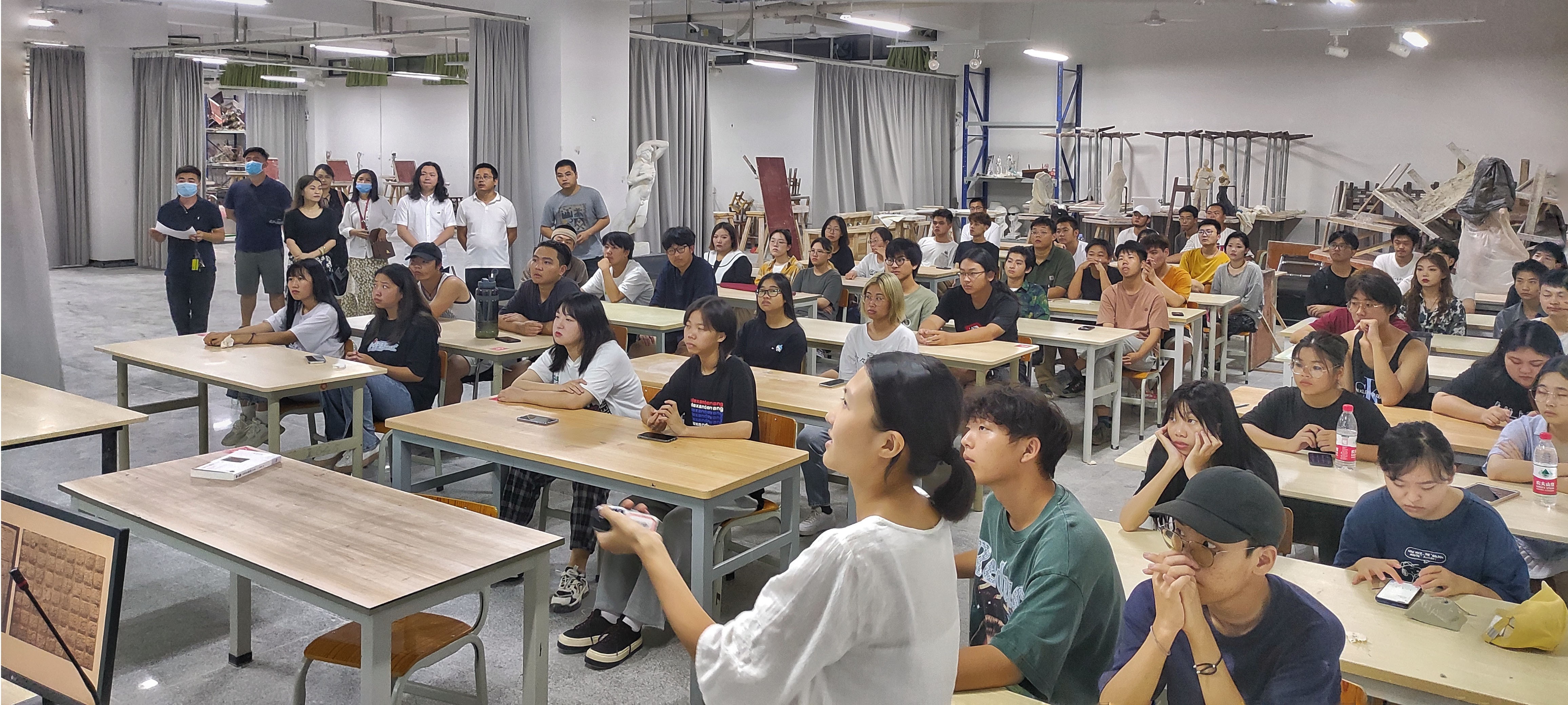 9月13日美术学院分管校领导胡胜副校长在副院长龚为带领下检查了我院开学第一天的教学情况。教务处和学校督导办公室对教师教学、学生出勤等教学情况进行了随机巡查。