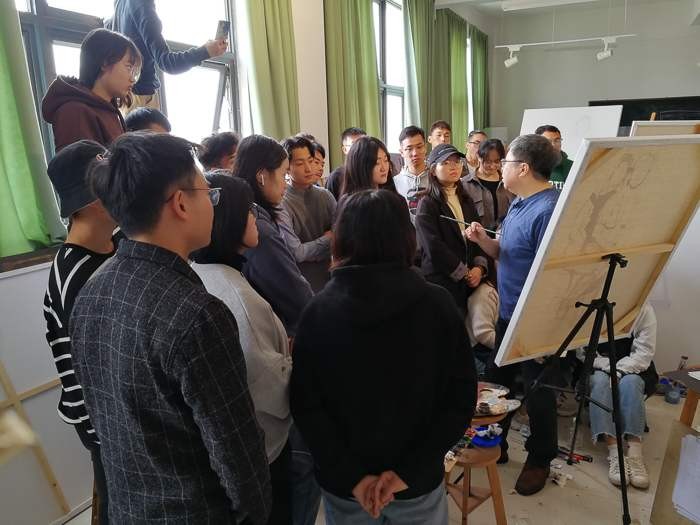 计宇教授在接下来两周的时间里,为绘画17、18级的同学进行现场教学指导。包括绘画17级人体写生课程、绘画18级色彩人物写生(二)课程。