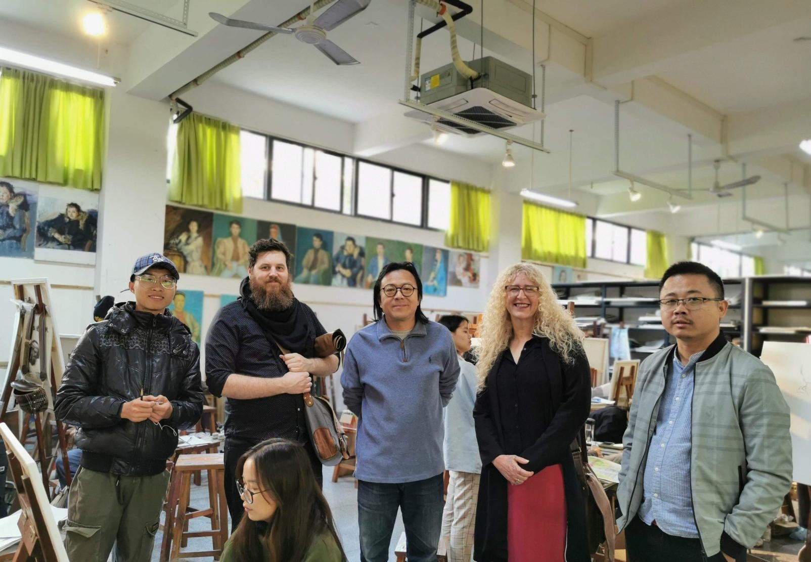 2019年12月11日,美国芬兰迪亚大学艺术学院院长丹尼斯、艺术学院绘画系主任迪伦、艺术学院服装系主任菲利丝一行来我校美术学院交流访问,参观了我校美术学院雕塑、绘画工作室,对我校美术学院各方面情况有了进一步了解。
