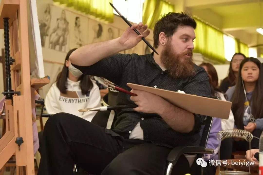 12月13日上午,迪伦主任亲临18级绘画教室,对绘画班色彩人物课程学生作品进行点评指导。为期三天的交流访问活动圆满结束。 (陈建江 摄)