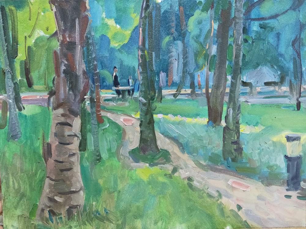 本次校园写生活动为期五天。师生分别集中在东、西校区取景作画进行写生。入冬后,空气中夹杂着丝丝冷意,北风也加快了南下的步伐,略带寒风,可是没有影响到同学们手中的画笔,他们或是坐在绿荫下,亦或是在校园路旁,三两成群,安静作画。