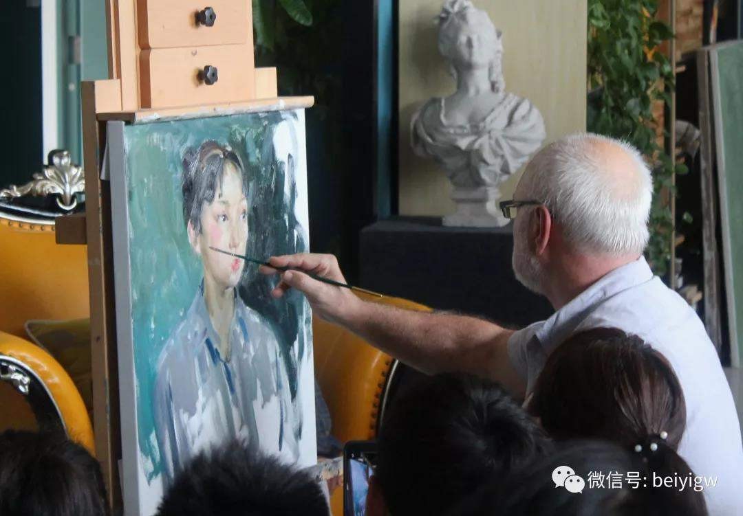 米·顾依达院士表示,创作一幅画最重要的是构图,另外要用心感受模特身上特有的气质,并根据所绘事物着色下笔,善于抓住事物的本质与形象本身。随后,米·顾依达院士现场示范如何构型、铺色、着色。