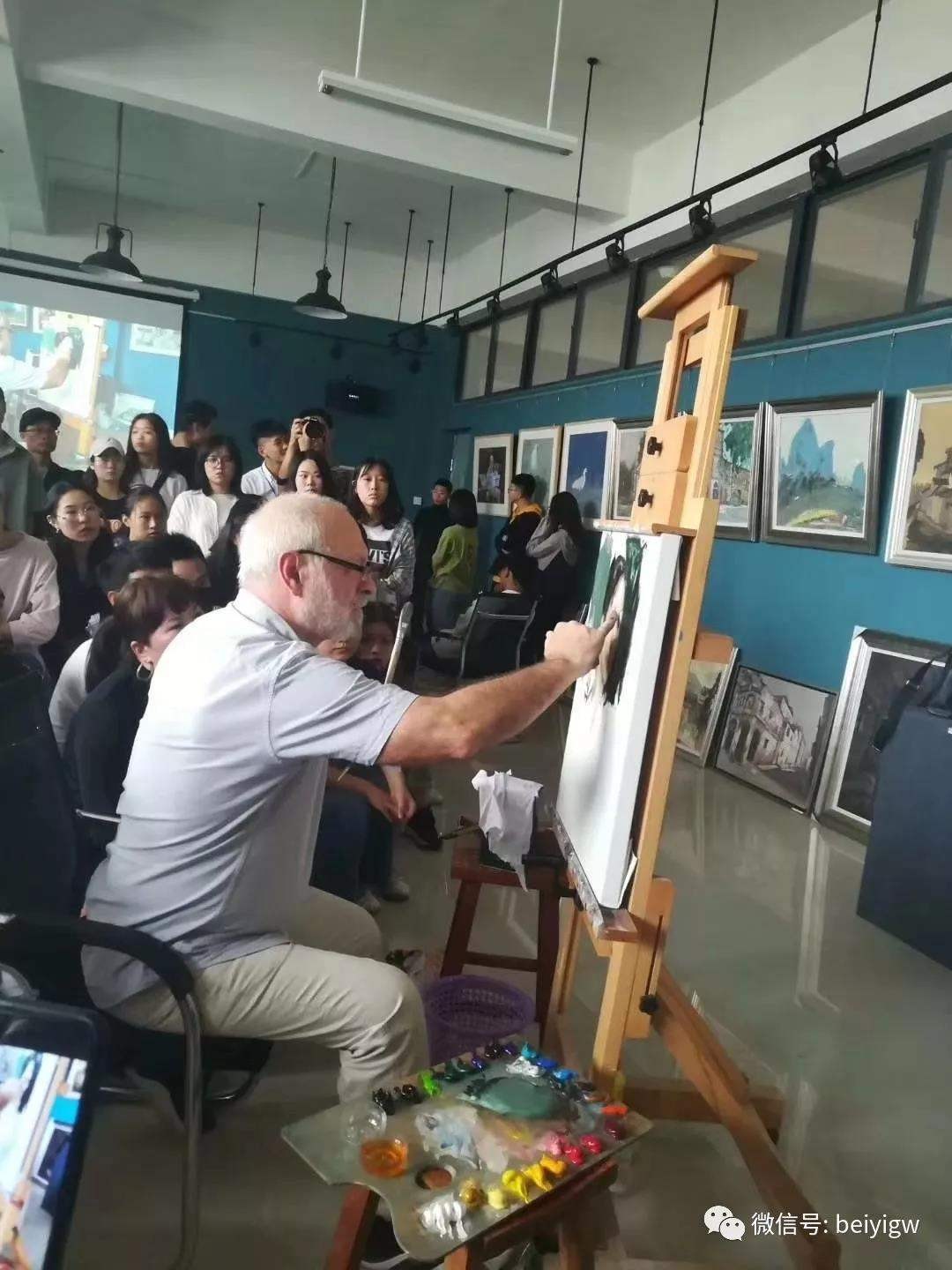 2019年11月12日(星期二)上午,乌克兰艺术科学院院士、绘画艺术大师米·顾依达莅临我校美术学院教研室(艺术楼313)开展人像写生示范,学院师生积极参与并一同观摩现场作画。