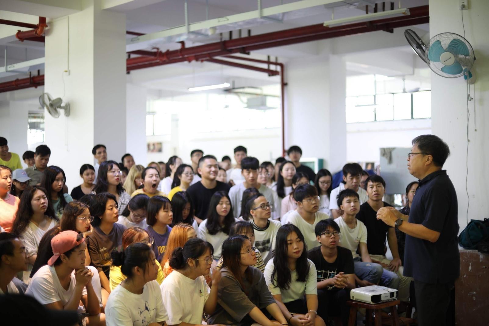 在作范画开始前,计宇教授对美国加利福利亚长滩州立大学做了简要介绍,通过图片的形式展示了他所教各国学生的作品并介绍个别学生的情况和经历。他表示绘画是种情感表达,是一种语言、绘画创作是一个享受的过程。