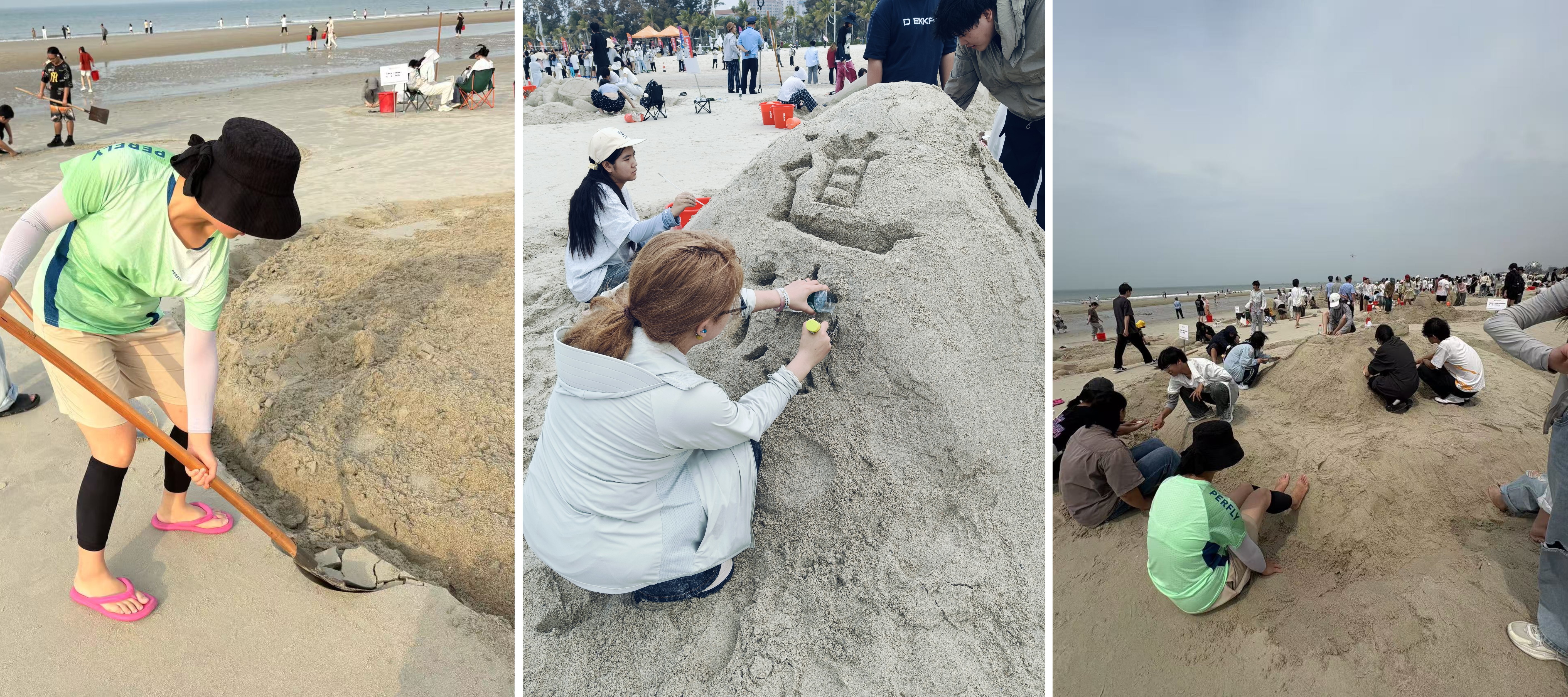 2025年4月18日,由北海艺术设计学院主办,北海旅游集团有限公司承办的北海银滩沙雕比赛暨北艺第二十二届沙滩运动会在北海市海滩公园成功开展。上午七点书法学院学工教师和各班辅导员老师带领学生陆续到达活动现场,开幕式九点准时开始,由校长卢新华致辞,节目精彩纷呈,随着一声炮响和彩烟升天,沙滩运动会正式拉开帷幕。