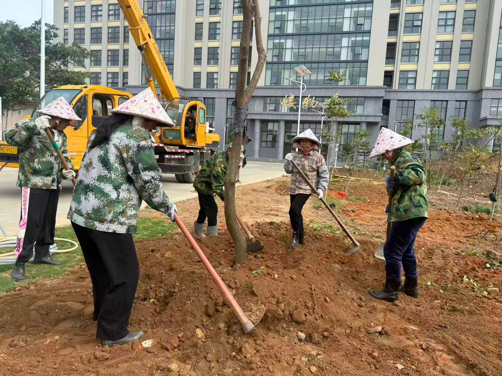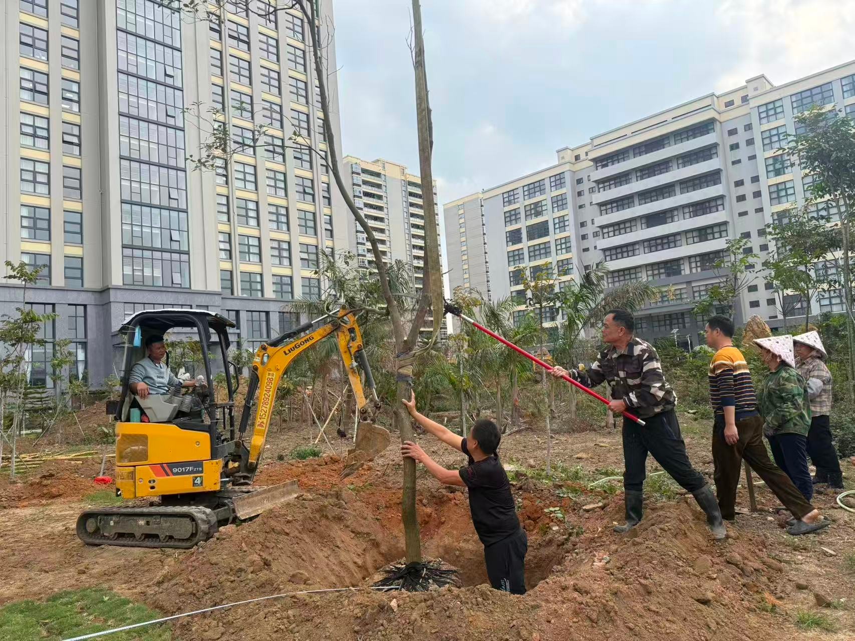 经过一下午的辛勤劳作,22棵香樟树、10株榕树、8棵大皇椰、32株散尾葵迎风挺立、错落有致,在午后阳光下焕发出勃勃生机。香樟树形雄伟、四季常青;榕树枝繁叶茂、冠盖如伞;大皇椰挺拔秀丽、富有热带风情;散尾葵姿态潇洒、叶色翠绿。多种苗木的搭配种植,进一步丰富了南区绿化的层次感和景观效果,为师生营造更加优美宜人的校园环境。