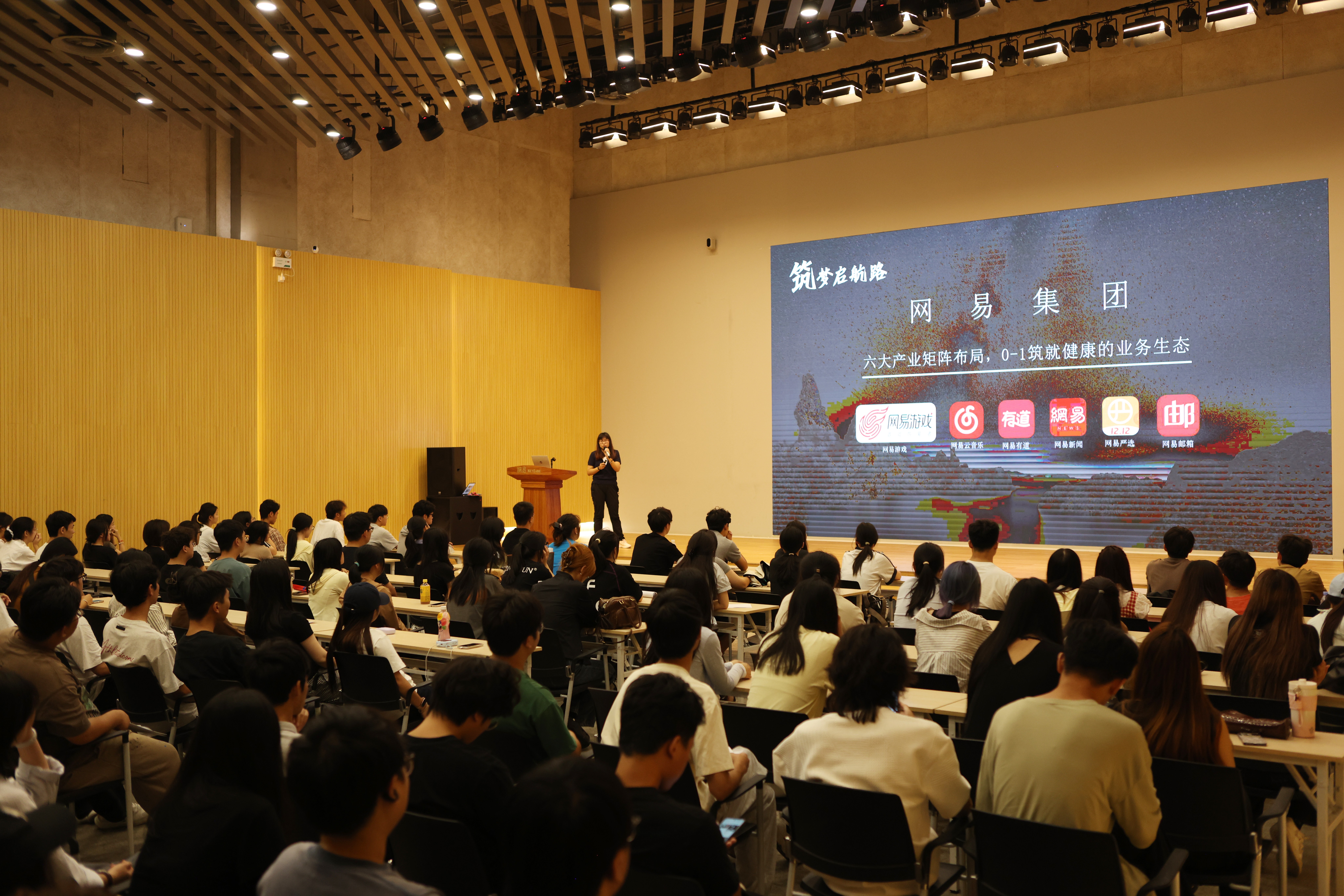 活动伊始,网易有道策划总监孙莉女士对学院师生的到来表示了热烈欢迎。她系统介绍了网易从传统门户网站到多元化互联网科技企业的发展历程,重点剖析了音乐、教育、传媒等核心业务板块的生态布局。结合当前就业环境,孙莉女士通过详实数据指出,虽然就业市场面临挑战,但数字内容创作、用户体验设计、在线教育产品开发等领域仍保持强劲的人才需求。