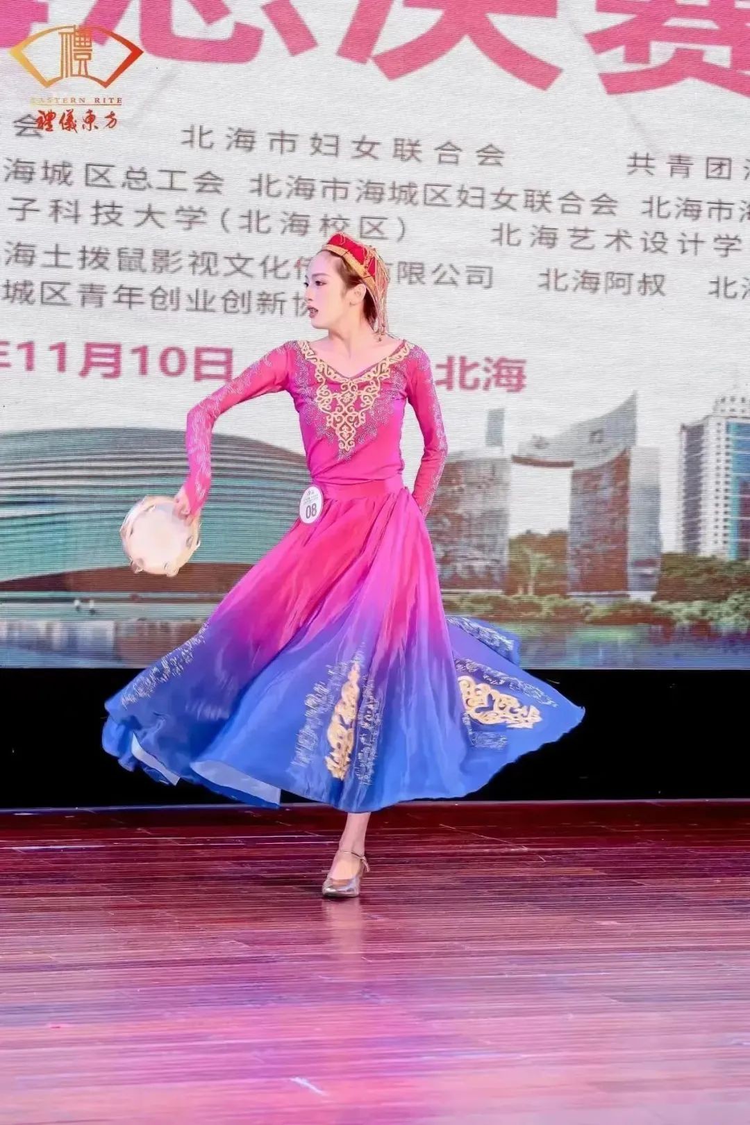 (我校学子余彤展示民族新疆舞蹈)