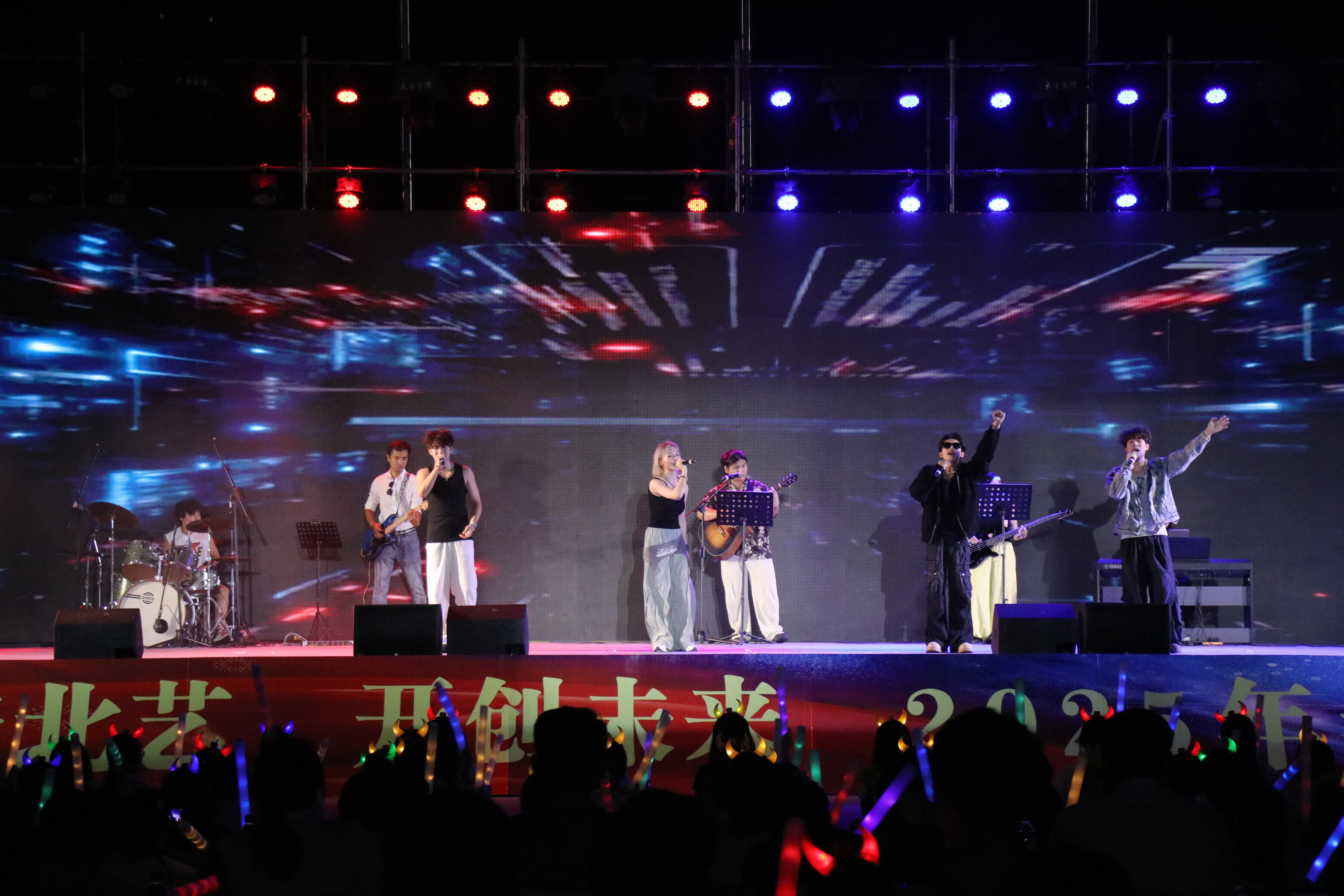 本次晚会以 “艺心初萌、梦绽北艺、以艺为翼、开创未来” 为脉络展开。流行音乐社的歌曲串烧以摇滚张力融合抒情细腻,成为点燃全场的开篇序曲。在 “艺心初萌” 篇章,小品《我的大学初体验》再现新生入校心境,辅导员老师们演唱的《有何不可》传递对新生的期许;街舞《power girl》以利落动作将现场气氛推向高潮。