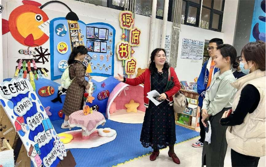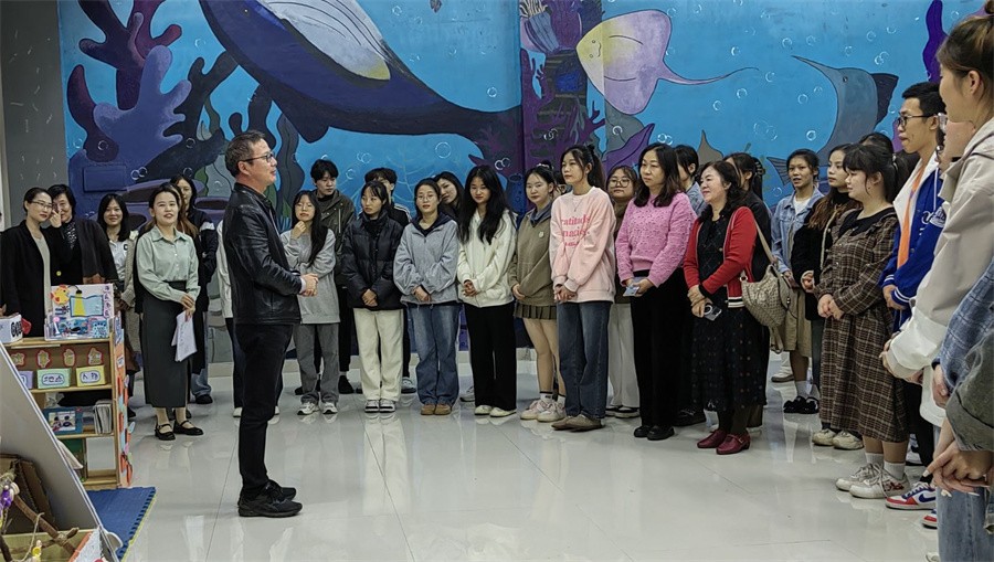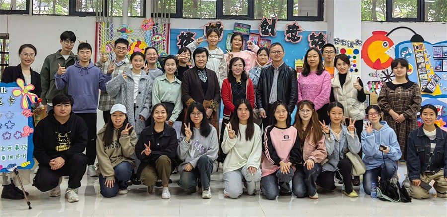 1月11日,人文教育学院2021级学前教育专业幼儿园教育环境创设课程结课汇报展在学校西校区四栋实验室举行。学校总督学王斌、学校教务处副处长吕雅婷、广西民办学前教育专委会副理事长廖焱、人文教育学院教授宝坤兰、学前教育教研室全体教师及2021级学前教育专业全体学生参加活动。