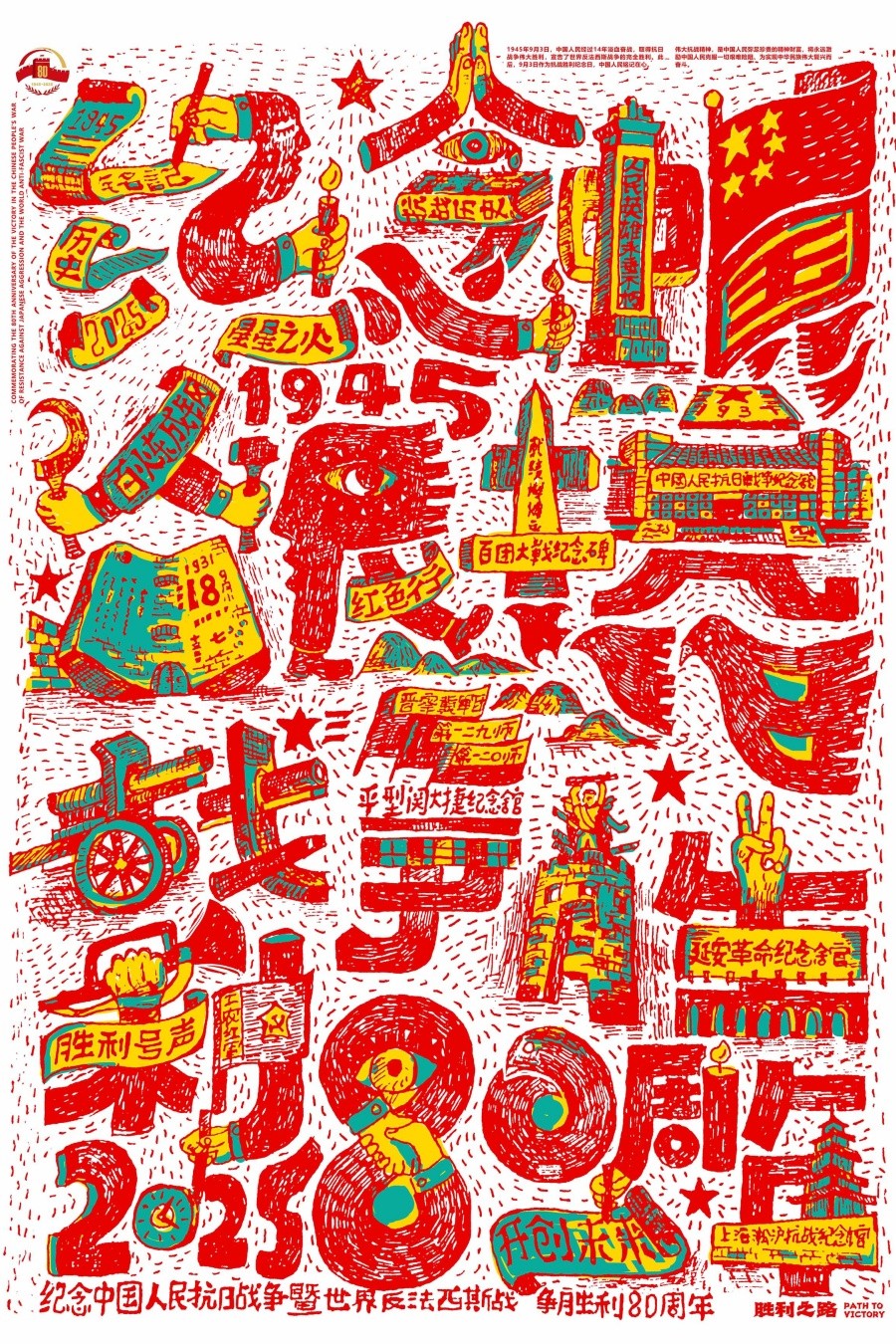 据悉,“铭记历史·开创未来——纪念中国人民抗日战争暨世界反法西斯战争胜利80周年”主题海报设计展,旨在引导广大美术工作者坚守初心使命,以艺术创作向社会各界尤其是青年一代传递铭记历史、缅怀先烈、珍爱和平、开创未来的时代责任,生动展现中华民族伟大抗战精神与爱国主义精神,进一步增强民族凝聚力和文化自信。展览评选工作遵循严格标准与规范流程,经全国范围初评,共有385件作品入围;最终经专家评审委员会综合评议,确定164件作品入选,我校两件作品均位列其中。