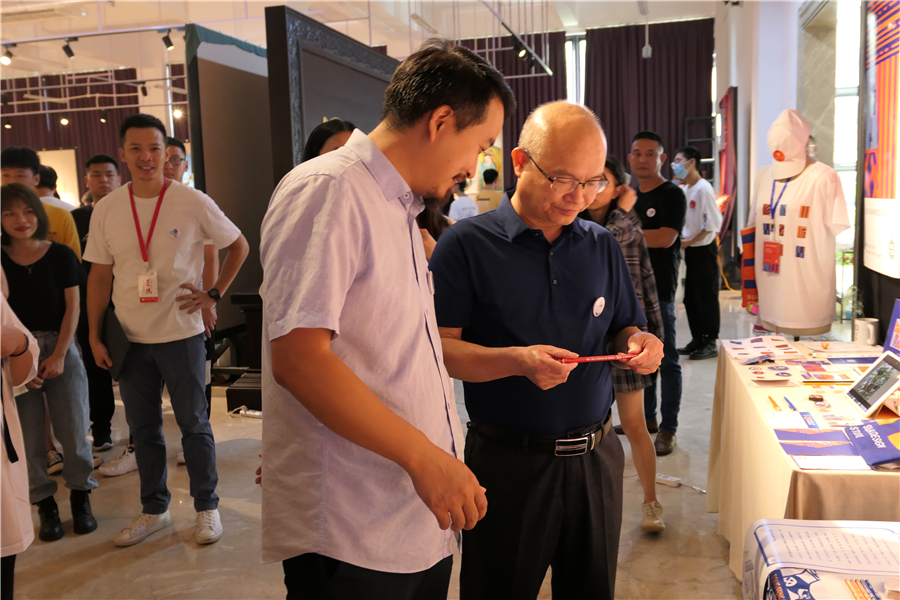 开幕仪式结束后,设计学院常务副院长李林平陪同各位校领导和教师进行参观,通过与学生的密切交流,理解与感受作品的设计理念和创新之处。