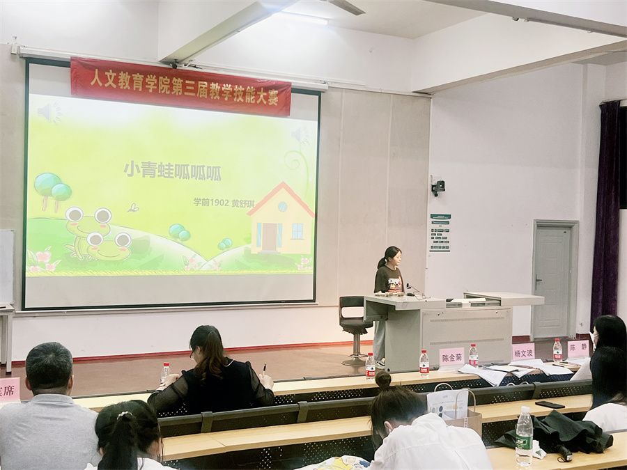 人文教育学院2019级学前教育专业和2020级艺术教育专业的全体同学参与此次比赛海选,共有12名选手成功晋级决赛。比赛分为说课、模拟上课两个环节。在说课环节中,选手们精心设计教案,就课程名称、课程需求、课程目标、课程内容、课时分配、教材使用、教学方法与手段等内容简明进行说课,并表述教学思想和理论依据。在模拟上课环节中,选手们灵活运用音频、视频材料、教具等展现教学特色,课堂精彩纷呈。在比赛过程中,选手们准备充分,教具设计富有创意,教学课件体现专业特色,授课技巧娴熟,教态自然大方,语言清晰、语速适中,向评委和现场观众展现了优秀的专业素养和教学技能。